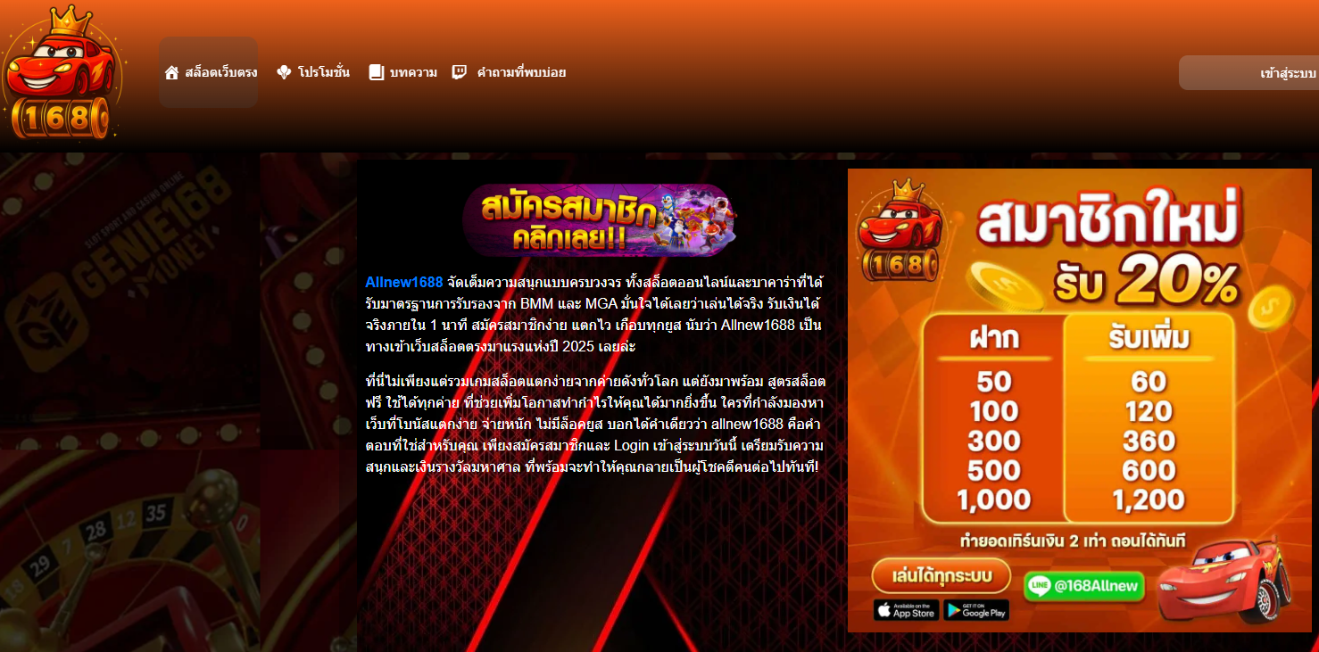 ลิงค์ทางเข้า และ สมัครสมาชิก ALLNEW1688 (ผ่านคอม และ มือถือ) เข้าสู่ระบบได้ตลอดเวลา